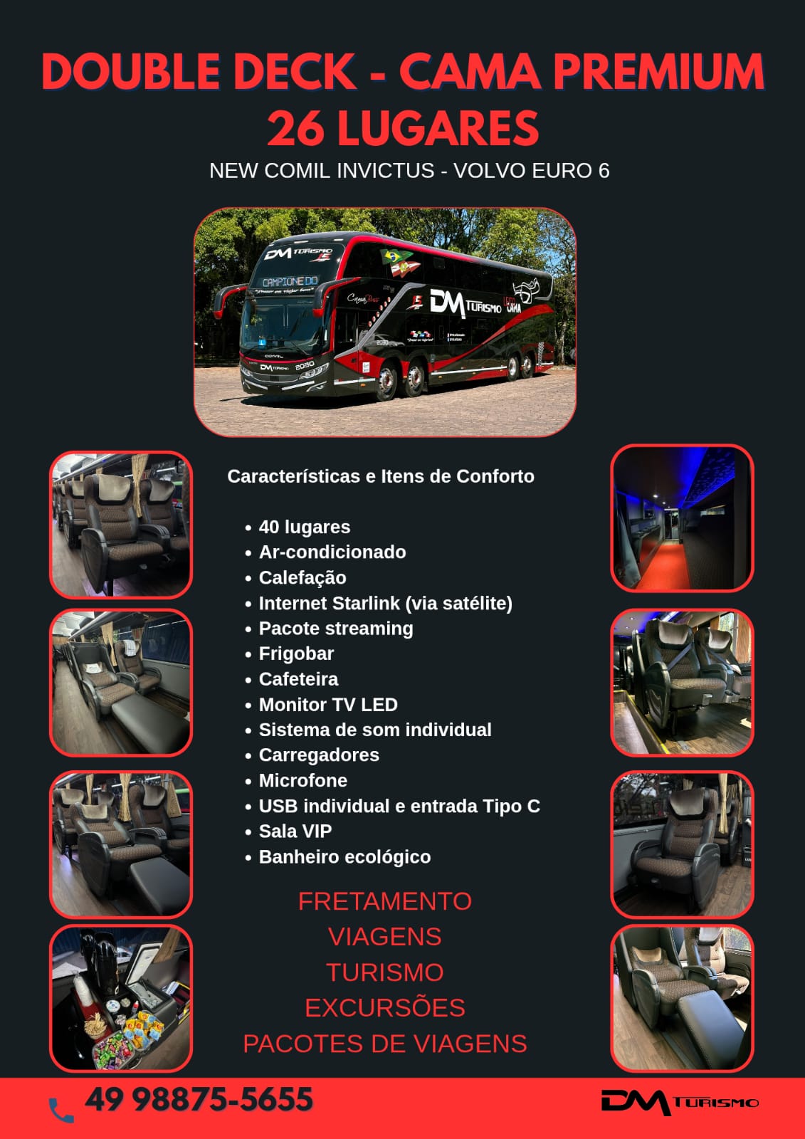 ÔNIBUS DOUBLE DECK – CAMA PREMIUM – 26 LUGARES